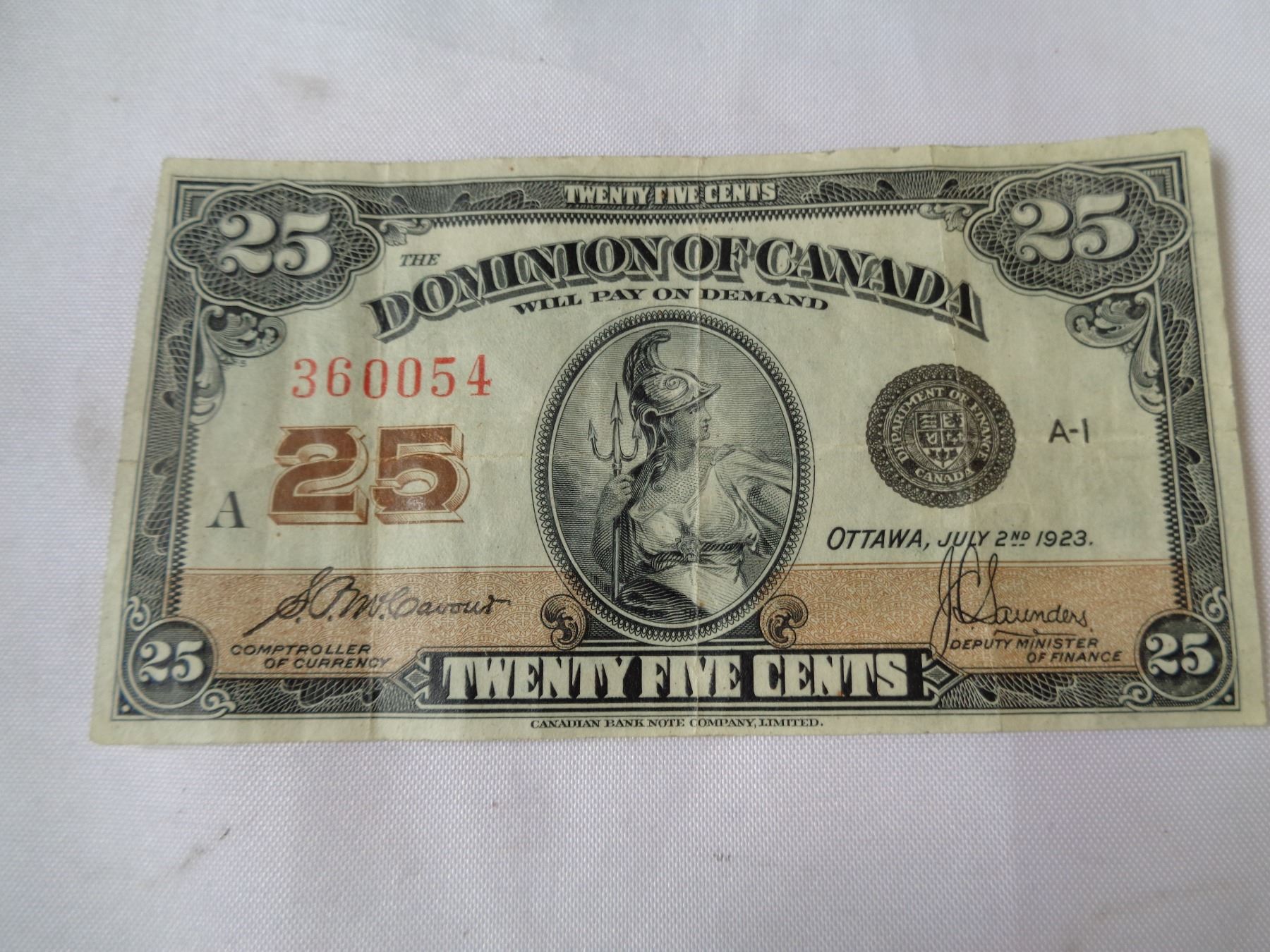 Urban Auctions 1923 CANADIAN 25 CENT BILL