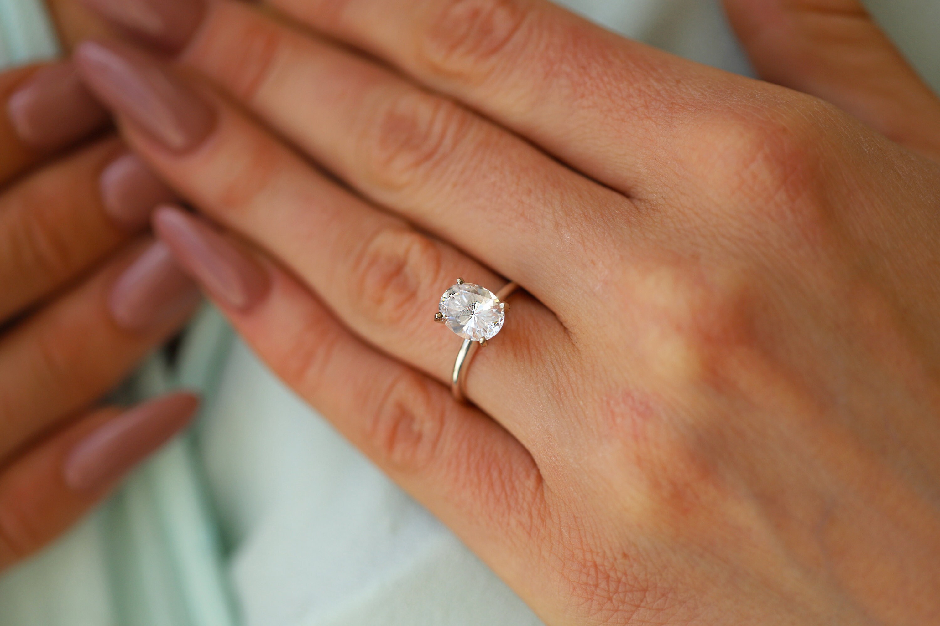 Oval Solitaire Diamond on Dainty Thin Shank Wedding rings oval, Engagement rings oval, Wedding